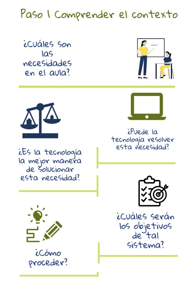 El primer paso en el diseño de una herramienta AIED es entender las necesidades en el aula. Una vez que los objetivos están establecidos, se tiene que ver cómo pueden ser alcanzados: qué factores considerar y cuales ignorar. Cualquier solución basada en datos está sesgada hacia fenómenos que pueden ser fácilmente calculados y estandarizados3. Por lo tanto, cada decisión tiene que ser discutida por los profesores que usarán la herramienta, por expertos en pedagogía que pueden asegurar que todas las decisiones estén fundamentadas en teoría probada, y por científicos de la computación que entienden cómo funcionan los algoritmos.